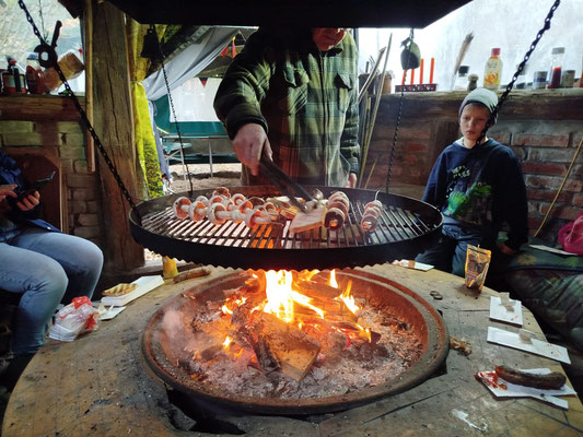 Zum Abschluss wurde in einer rustikalen Hütte im Jagd- und Hegekonvent gegrillt. Bratwürstchen und die selbst gesammelten Champignons fanden schnell Abnehmer, so ein Tag in der Natur macht schließlich hungrig.